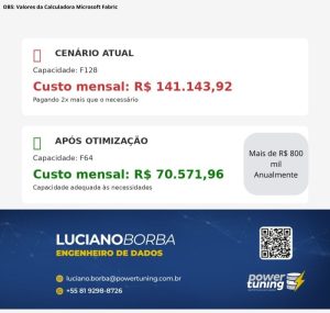 Se sua empresa usa Fabric e a fatura está maior do que deveria, vale uma conversa. Estamos ajudando empresas a economizar e usar melhor suas capacidades.