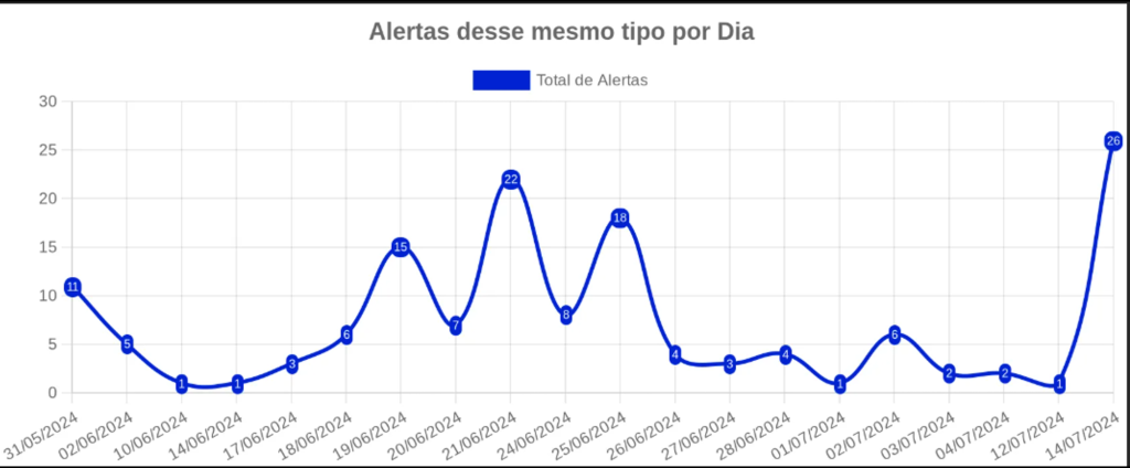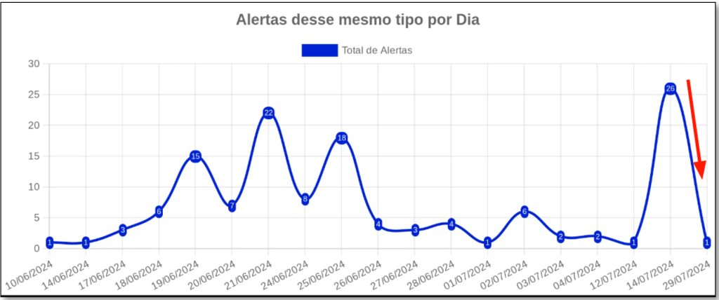 E como isso se refletiu no ambiente do cliente, saímos de 26 alertas em um dia para apenas 1, 15 dias depois: