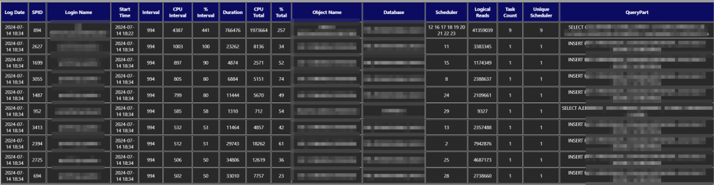 O alerta de CPU Utilization é disparado quando o consumo de CPU ultrapassa um limite que você define (totalmente personalizável), mas ele vai muito além de um gráfico simples. E é aí que o PowerAlerts se destaca! Esse alerta te dá uma foto completa do que está executando no ambiente: sessões ativas, consumo de recursos, tempos de execução e muito mais. Ou seja, antes mesmo de entrar no sistema, você já sabe quem está causando o problema. Veja um exemplo: